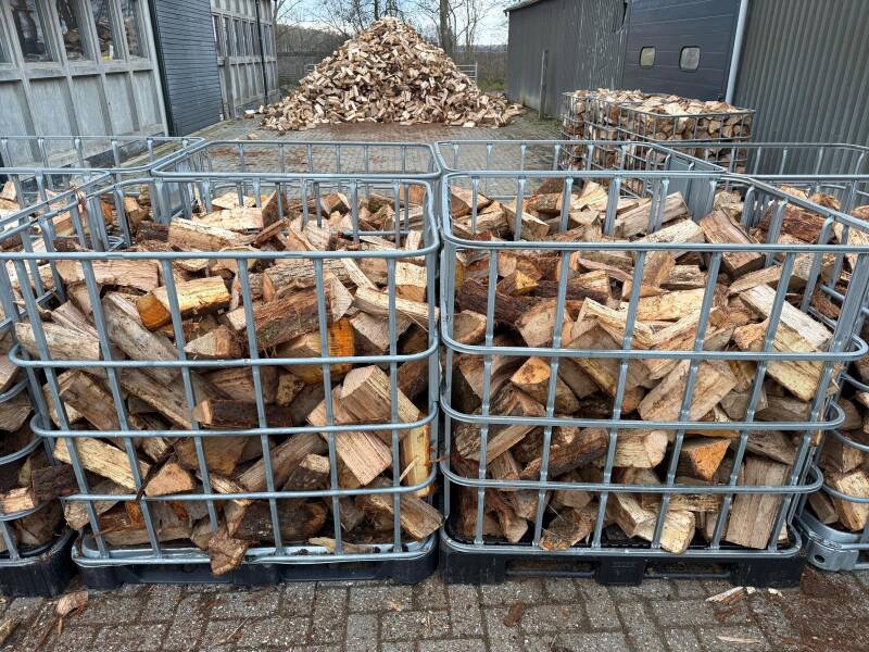 Een mix van eiken, beuken en essenhout, gezaagd en gekloofd.