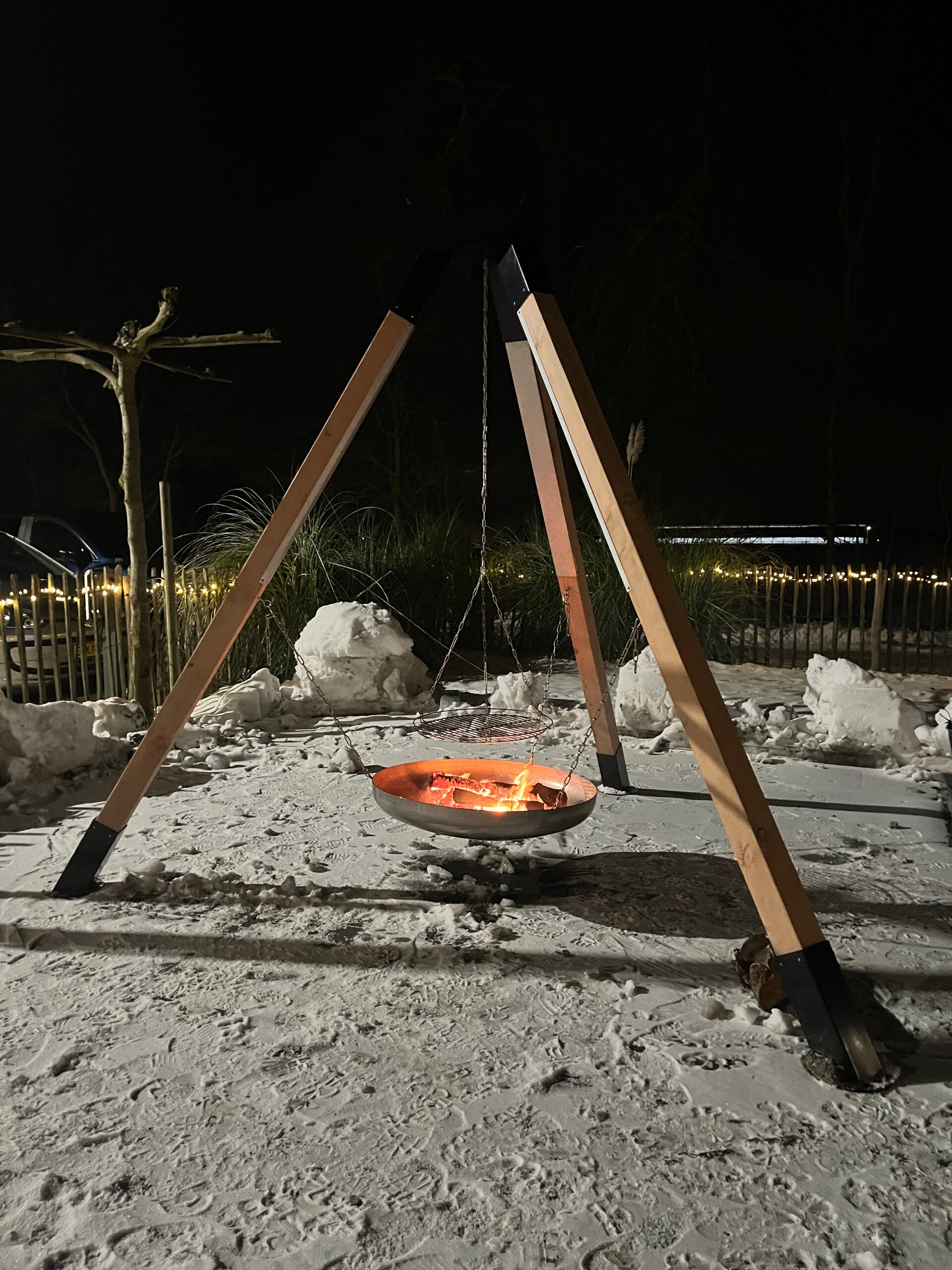 XL (250 cm) - palen 9 cm dik - RVS vuurschaal ø80cm (hangend)