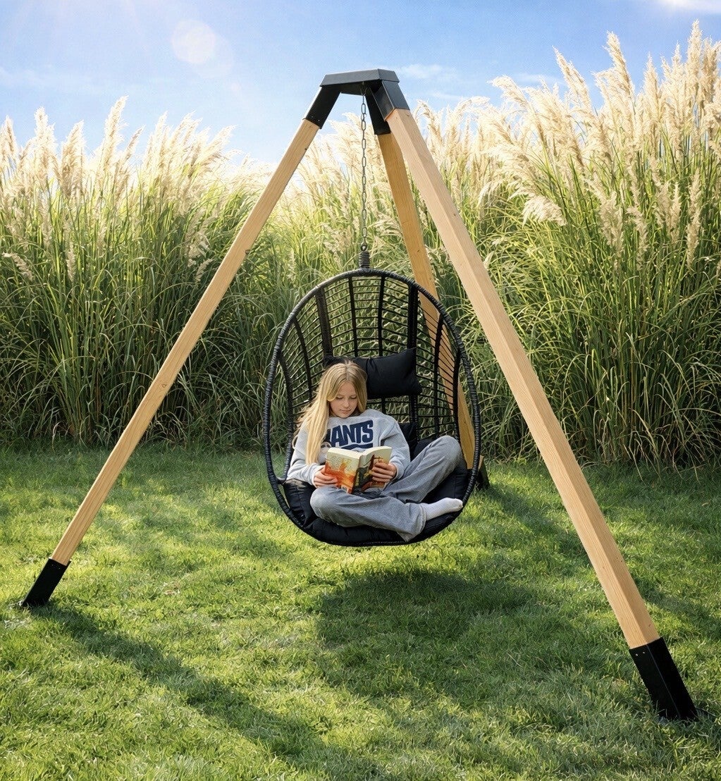 RVS Tripod met RVS vuurschaal en RVS BBQ rooster of met mooie rotan hangstoel